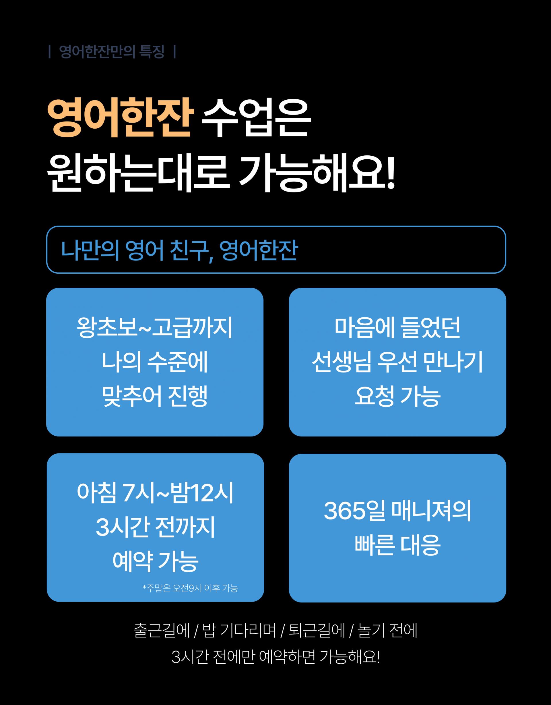 ▶︎ 당일 3시간 후~ 다음날 수업 예약이 매일 오픈됩니다.